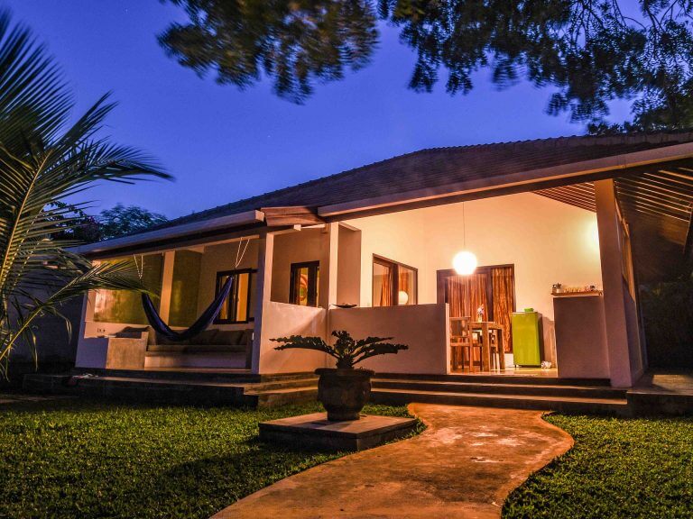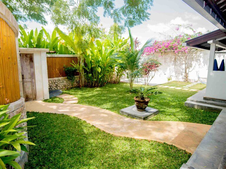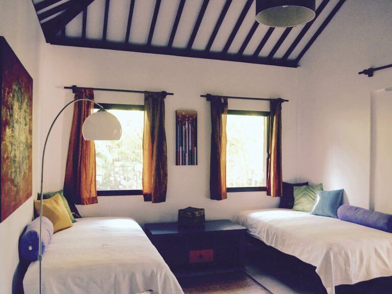 Obendrauf gibt es noch eine Sportfläche, auf der ich morgens gerne Yoga gemacht habe. Sie ist der höchste Punkt auf dem Grundstück und überdacht, sodass man im Schatten sein Sportprogramm absolvieren kann. Was uns auch sehr gut gefallen hat waren die vielen schönen Pflanzen und Palmen. Es macht alles noch viel paradiesischer. Außerdem weht dort immer ein leichter Wind, der die heißen Tage viel erträglicher macht. Die Luft steht nicht so wie zB in Seminyak oder Canggu. Etwas schade war, dass das Wlan nicht wirklich funktioniert hat. In den Villen könnte der Empfang besser sein und oft lag es an der Verbindung selbst (wahrscheinlich bedingt durch Kabelarbeiten). Bis auf diesen Punkt war aber alles absolut perfekt! Wir haben uns rund um die Uhr sicher und wohl gefühlt und es viel uns sehr schwer, nach einem Monat weiterzuziehen. Vor allem, da wir nach zwei Wochen angeboten bekamen, in die größere Villa nebenan einzuziehen. Beide Villen waren sehr sauber, gepflegt und man hat einfach gemerkt, dass hier rund um die Uhr jemand an der Arbeit ist, um die Häuser in Stand zu halten und zu pflegen.